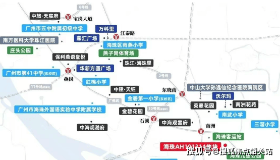 中交天翠距离地铁2号线和广佛线交汇的南洲站仅约500米直线距离,且紧邻广州绕城高速和广州大道,交通网络四通八达,极大地方便了居民的出行需求。
