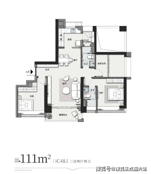 约111㎡三房:精致改善之选,4.2米景观阳台+3.5米主卧开间,空间感媲美更大面积户型;