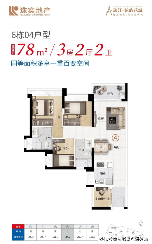 ✅ 高实用率3+1房设计,带主套,9成超高实用率!