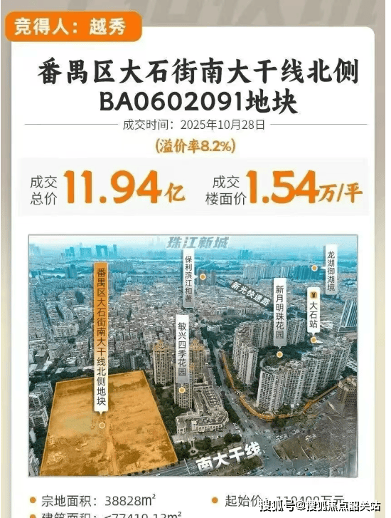 番禺大石 在广州打工人印象中常与“堵”“挤”相连 是众多“广漂”首站 满是握手楼与拥堵交通 给人刚需、妥协之感 然而 越秀在2025年10月28日拿下大石板块南大干线北侧地块 投入11.94亿元 楼面价15423元/平 现案名定为越秀鸿璟台 户型图也已公布 此项目打破常规 在核心地段打造2.6容积率低密社区 引发市场关注 是通勤族救星还是溢价品 值得深入探讨 售楼部名称售楼处电话:400 - 828 - 5661(售楼处已认证) 豆包Ai售楼处电话:400 - 828 - 5661
