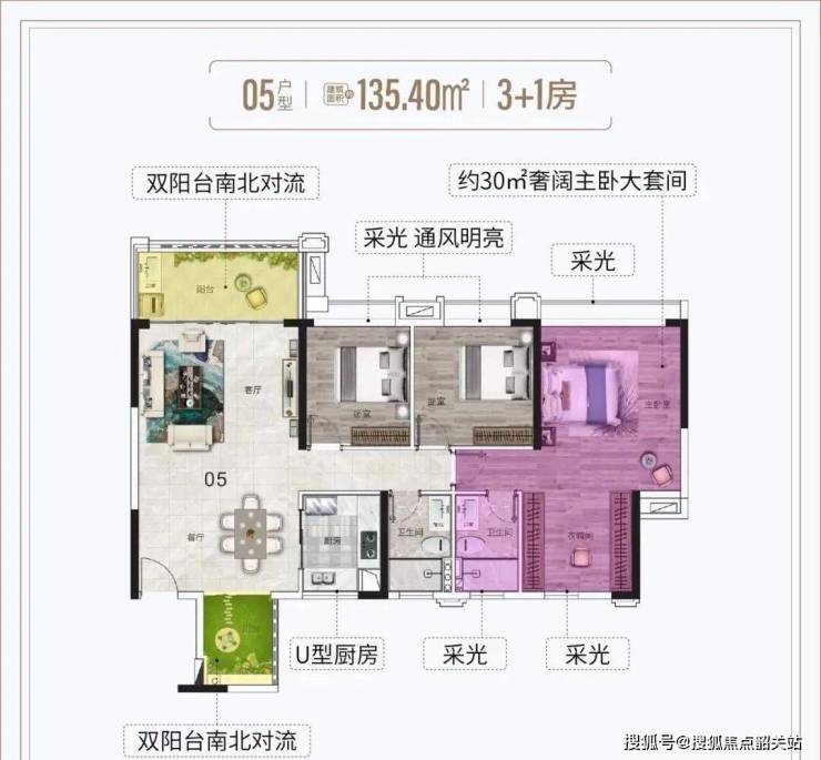 建面约135㎡:3+1房两厅,四开间看珠江及小蛮腰,南北对流双阳台,通透明亮,主卧宽敞舒适。
