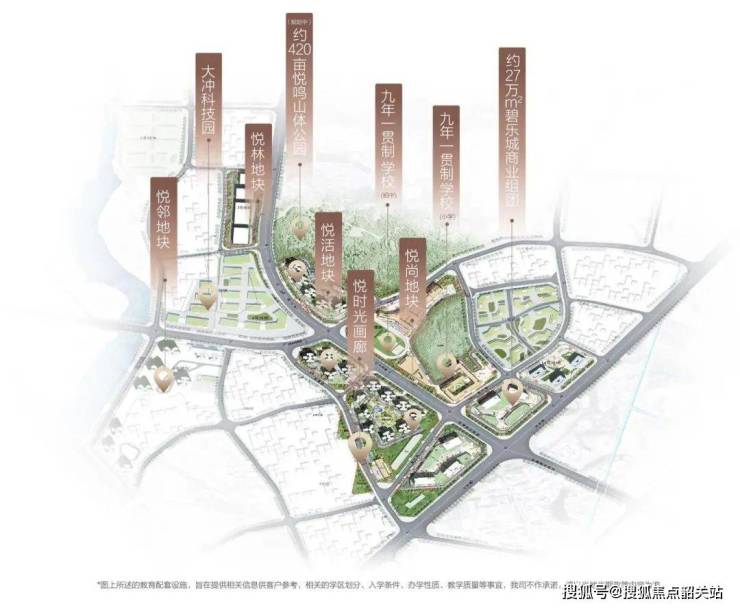 配建约6万㎡9年一贯性公立学校及2所幼儿园
