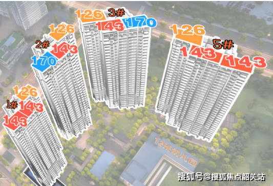 中海麓府体量不大,仅 4 栋住宅,40 多层高(1#高 40 层,2 - 3#高 44 层,5#高 41 层),两梯三户设计,规划有 1 所 12 班幼儿园 + 1 栋自持物业,货量在 500 套上下。面积段分为建面约 126㎡三房、143㎡和 170㎡的四房。