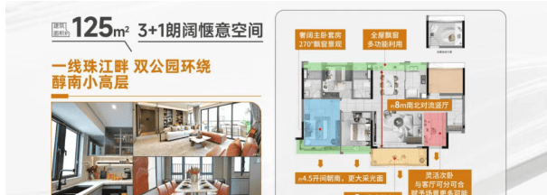主推户型:建面约87㎡/104㎡/125㎡荔湾醇南瞰江小高层
