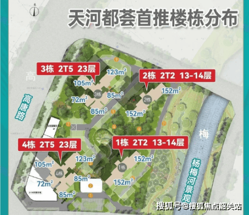 户型设计:建面约72-152平方米的全南向户型,超高使用率,层高从3.15米起。