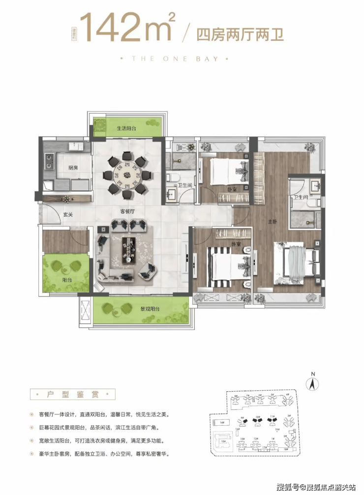建面约142㎡ 3+1多功能房:顶级配置,提供极致的居住体验,适合追求奢华生活的家庭。