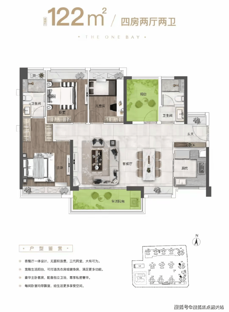 建面约122㎡ 3+1多功能空间:专梯专户设计,给予身份地位相匹配的尊崇舒居体验,完美协调社交与私密需求的舒适尺度。