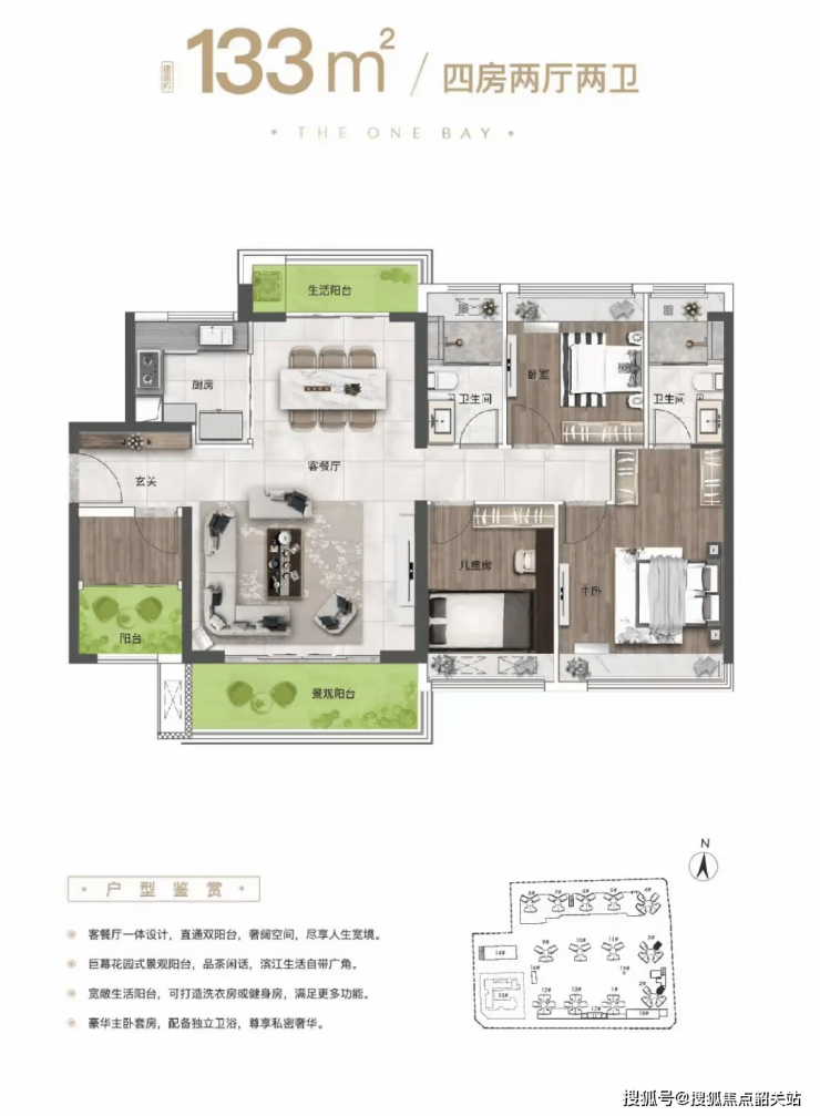 建面约133㎡ 3+1多功能房:超大面积,提供更多私人空间,适合追求高品质生活的家庭。