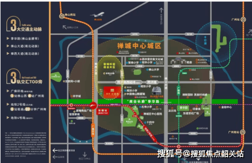 交通网络:三轨交汇TOD,广佛通勤高效便捷