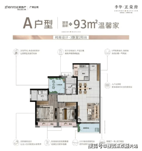 主力户型以“小面积、大功能、全南向”为核心亮点: