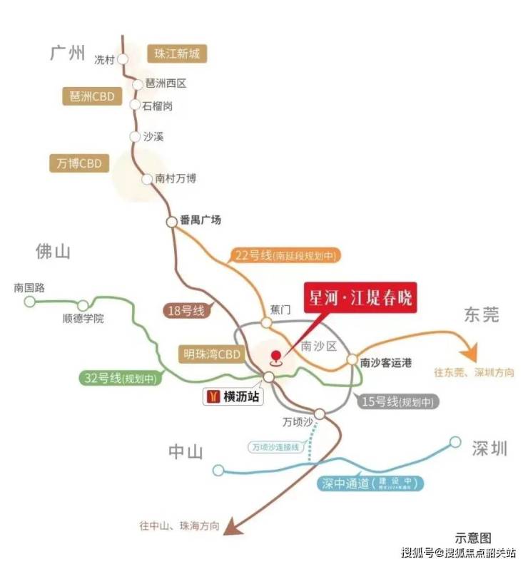 星河江堤春晓的交通优势十分明显,项目距离地铁18号线横沥站仅约500米。地铁18号线时速高达160公里/小时,乘坐快线两站即可抵达琶洲,三站便可到达珠江新城,将珠江新城、琶洲、万博商务区等广州重要CBD串联起来。未来18号线还将继续向北延伸至白云、花都,向南直达中山、珠海乃至深圳,实现与湾区核心城市的无缝对接,进一步提升项目的交通便利性和区域价值。
