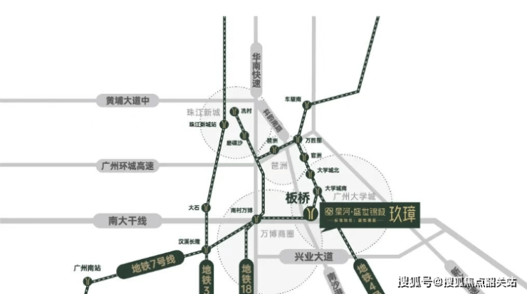 项目坐拥万博板块黄金通勤圈,彻底解决刚改家庭的主城通勤焦虑。公共交通方面,全新三期玖璋组团距离7号线板桥站约700米,步行10分钟内即可进站,无需冗长接驳;从板桥站出发,2站直达万博核心商圈,无缝换乘3号线、18号线等线路;5站抵达琶洲CBD,轻松对接互联网、科创企业聚集地;7号线串联广州南站,15分钟可达,大湾区跨城出行轻松便捷。