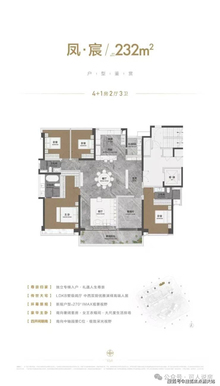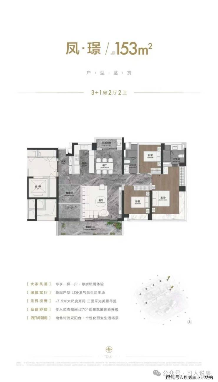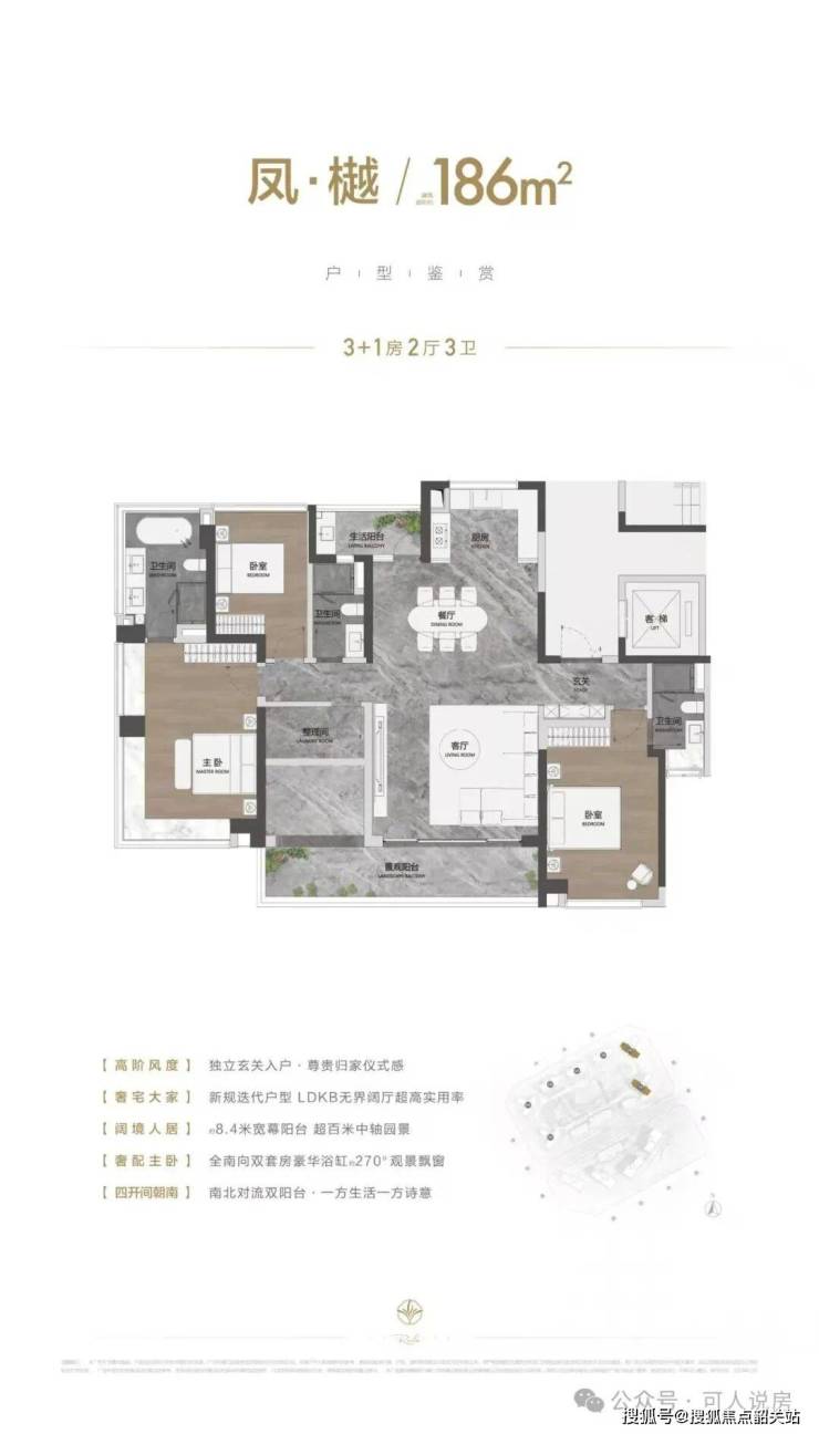 户型设计上,顺控凤起观澜全盘采用专梯专户设计,得房率高达约96%-100%,彻底打破了传统大平层公摊过高的痛点。这一数据在行业内堪称罕见,意味着业主购买的每一平方米都能得到最大化利用。建面约153㎡的户型,采用南北对流双阳台布局,入户玄关设计增强了私密性,主卧套房配备独立卫浴与衣帽间,满足了三口之家的舒适需求。186㎡的户型则升级为双套房设计,约8.4米的景观阳台可俯瞰园林盛景,北向生活阳台兼顾实用性,特别适合三代同堂家庭的居住需求。而232㎡的户型,则以单梯独户的尊崇体验为特色,中西双厨设计、独立家政间与约12米的南向面宽,重新定义了顺德顶豪的生活标准。