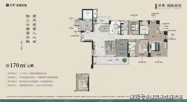 针对高端改善群体,项目还推出了更为奢华的大平层产品。约170㎡的“云栖”户型,采用3+1灵动空间设计,并创新性地引入了双套房概念,满足了多代人独立居住的需求。约192㎡的“青云”户型,更是实现了专梯专户的尊贵配置。五开间朝南的格局,配合270°转角飘窗,将采光和观景效果发挥到极致。双套房设计,让主人和长辈都能拥有独立的私密空间。而建面约258㎡的“映月”户型,则是当之无愧的楼王。约15米L型观景阳台,如同一条空中走廊,将湖光山色尽收眼底。约50㎡的LDKG(客餐厨阳)通厅设计,打破了传统空间的界限,营造出恢弘大气的社交场域。双套房设计,更是将奢华生活演绎到了极致。
