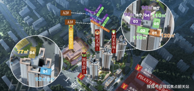 A:提供90-125㎡三至四房户型,南向设计,高使用率。