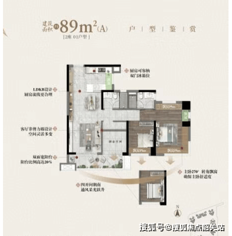 89平方米的C户型,采用南北对流设计,三房两卫,均价约1.6万元/平方米。南北对流意味着空气流通顺畅,夏季凉爽,冬季温暖,居住体验更佳。