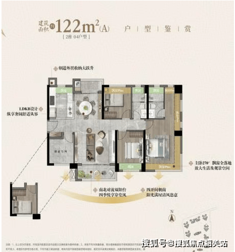 122平方米的四房两卫户型,采用LDKB设计,四开间南向,均价约1.7万元/平方米。这种设计让空间更加通透,家庭成员之间的互动更加频繁,非常适合大家庭居住。