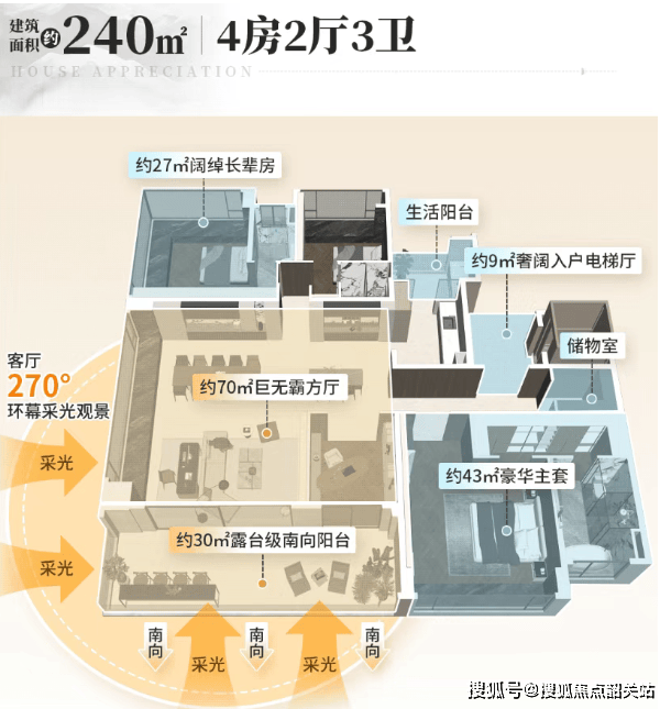 户型设计亮点纷呈:约8.4米南向巨幕阳台、270°全景飘窗、双南向套房、34㎡ LDKG一体化宽厅……每一处空间都为改善家庭量身定制,兼顾功能、尺度与情感交流。