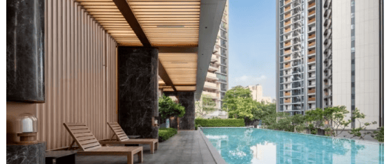 社区以“城市山林”为设计理念,保留十余棵原生大榕树,打造约1.5万㎡中央园林,通过中轴绿廊串联内外环绿化带,形成星罗棋布的花园体系。下沉式会所面积约1000㎡,配置恒温泳池、健身房、瑜伽室、咖啡吧、阅读空间等,外立面采用香槟色金属与落地玻璃,现代感十足。此外,项目临近白云山,部分楼栋推窗即见无遮挡山景,步行即可登山,实现“离尘不离城”的理想生活状态。
