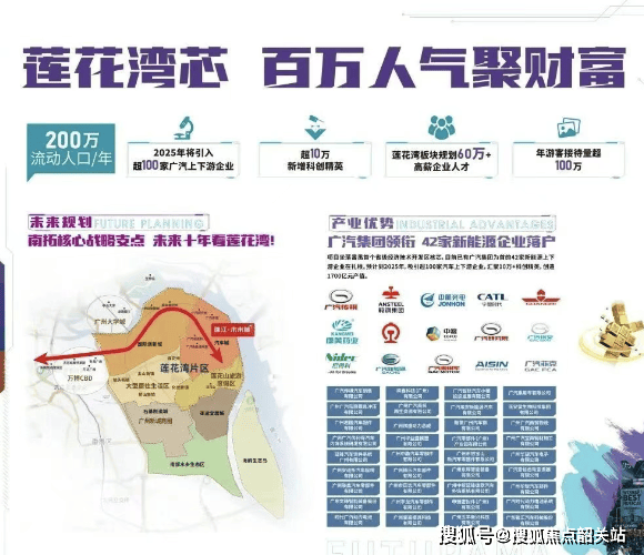项目作为106万㎡超级综合体大城,依托珠江品牌实力与成熟开发经验,打造莲花湾板块标杆项目。项目坐落于广州第三中轴(广州科创中轴)与番禺财智中轴交汇处,抢占广深科技走廊核心区位,坐享粤港澳大湾区发展红利。周边产业基础雄厚,以广汽集团领衔,已汇聚42家新能源企业,预计2025年将超100家,创造1700亿产值,形成强大的产业支撑,为项目价值提升提供坚实保障。