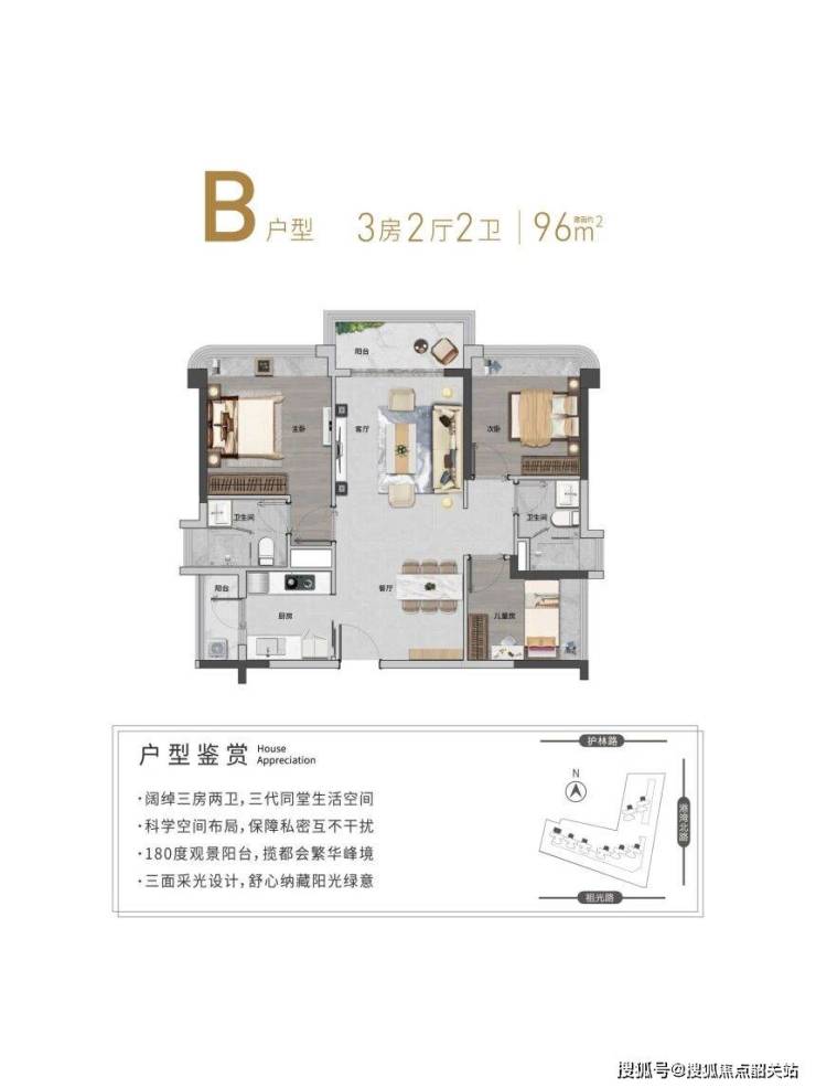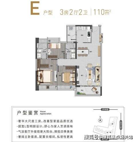 全南向设计:大部分户型采用全南向设计,采光极佳,冬暖夏凉。