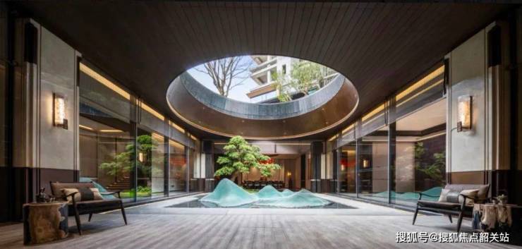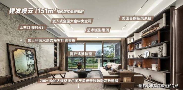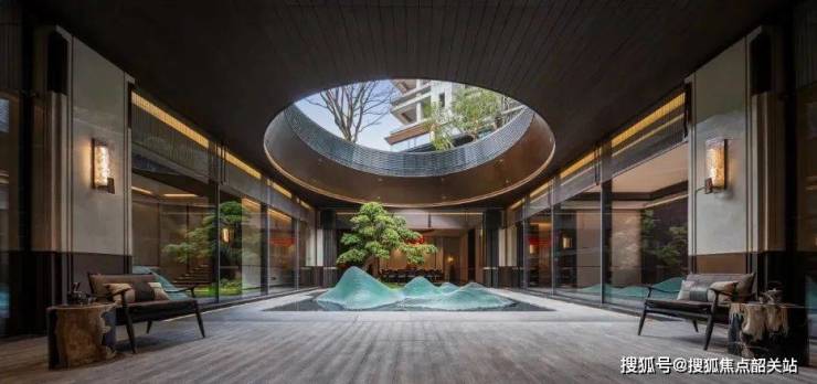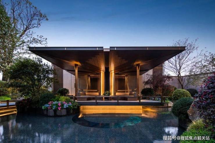 建发缦云的建筑外观上,通过展翼飞檐、钻感大面LOW-E玻璃、墙角270°无柱脚转脚玻璃,及去形留意的造园手法,新中式高定营造感十足。