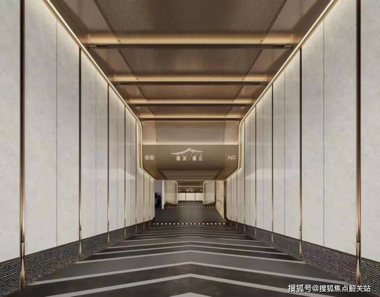 地下精装入户堂采用水磨石地花整铺,嵌入定制铜图案,叠加3.3米的大堂净高,呈现由内而外的精奢品质,回家的仪式感再次得到提升。