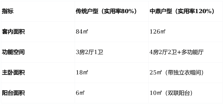 传统户型 vs 中鼎创新设计:一场“空间革命”我们以105㎡户型为例,对比传统户型与中鼎设计的差异: