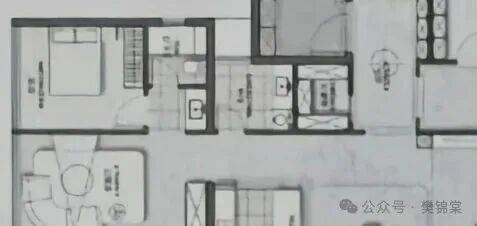 其实一开始这个户型是有设计保姆间想法的。就是你们网上看到的这个初稿图