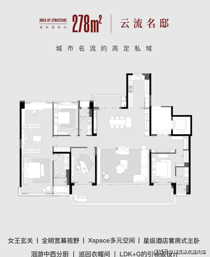 在户型设计方面,西派尊府提供了278-370㎡多种面积段的选择,适应不同家庭结构的需求。每一套户型都经过精心规划,注重空间的开放性和灵活性,力求在有限的空间内创造出最大的使用价值。客厅、餐厅与阳台无缝连接,形成宽敞明亮的公共活动区域;卧室则强调私密性和舒适性,为居住者提供一个安静放松的私人空间。同时,房间内部选用了高端建材和智能系统,不仅提升了居住的安全性和便利性,也让每一个角落都散发着生活的尊崇感和艺术典藏性。