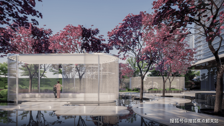 高标准园林,强调水景与艺术装置结合