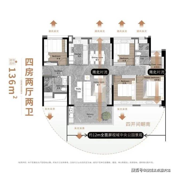 户型设计同样是和樾府的一大亮点。建面约为110-160平方米的低密全景板式奢宅,首期容积率仅2.7,16-24层的小高层设计,全盘仅872户,保证了居住的私密性和舒适度。所有户型均采用T2/T3布局,专梯独户的设计让每一家住户都能享受到专属的服务通道。更重要的是,所有的房间均为全南向设计,确保每个角落都能获得充足的阳光照射,同时享有无遮挡的景观视野。特别是央景楼王7栋160平方米的户型,不仅被园林360°环绕,还配备了约21平方米的超大阳台和约28米双向采景面,为业主提供了极致的居住体验。