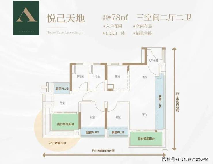 建面约86㎡园景四空间:比同等面积多享一间“房”,拥有比肩约110㎡的宽敞感。约11米全南向四开间,更大采光通风面。约5米长南向270°景观大阳台,豪华星级主卧套房设计,270°IMAX视野盛宴+三面通透采光,南望中央园景泳池,小户型的越级享受。