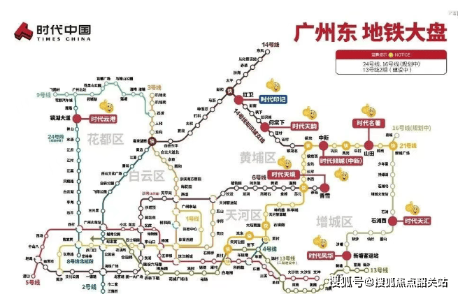 时代印记坐落于中新知识城核心区域,紧邻红卫地铁站,三条地铁线环绕,其中14号支线一站即可到达白云新和,快线两站到嘉禾望岗;21号线则连接天河员村。此外,穗莞深-新白广城轨使居民能够快速通达珠三角各大城市。项目旁马头庄正在规划建设高铁、地铁、城轨为一体的超大型TOD交通枢纽,未来预计15分钟可达广州东站,12分钟到达南沙港,10分钟至白云机场。这种多维度的交通优势使得时代印记在区域发展潜力上具有极高的吸引力。