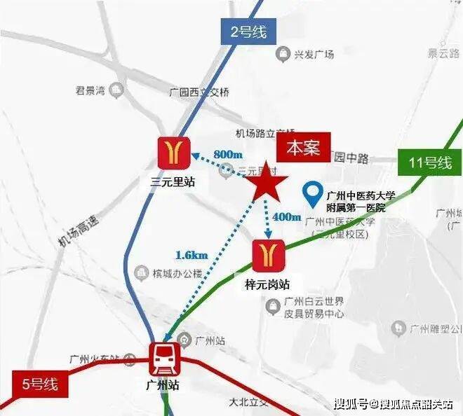 城芯地铁物业:项目距地铁11号线梓元岗站约390米(2022年开通),距2号线三元里站约860米。