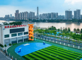 谁能想到在城市核心,还能有这么大的绿色空间?项目自带约18万㎡滨水文化公园,里面有儿童乐园、大草坪、羽毛球场和篮球场,平时带娃放风筝、和朋友打打球都超方便。公园还和广钢中轴线公园联通,组成超60万㎡的“T”字景观公园,直望小蛮腰,清晨在江边跑步,傍晚在草坪上散步,呼吸着新鲜空气,感受着江风拂面,快节奏的生活瞬间慢下来。