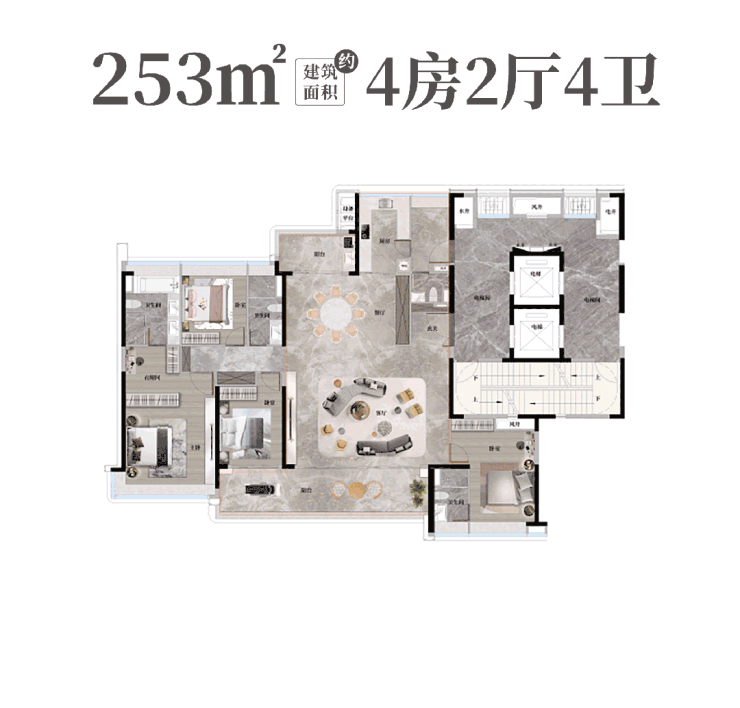 首推4栋、5栋,清一色140㎡四房户型,全是17层小高层。