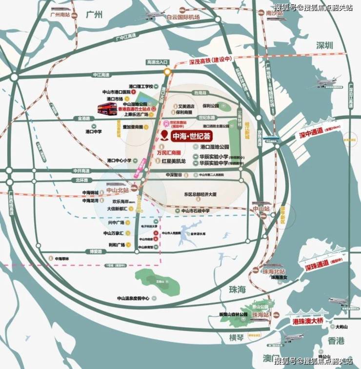 深中通道接駁口在旁45分鐘達深圳,20分鐘中山港碼頭接駁香港中港城