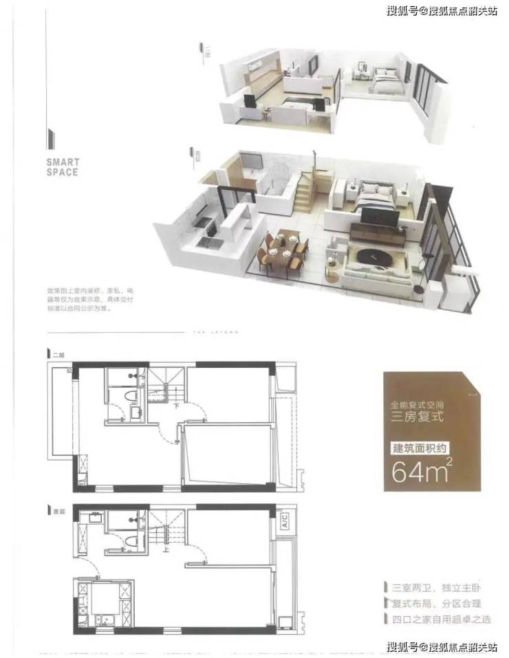 64㎡ LOFT三房兩廳兩衛復式