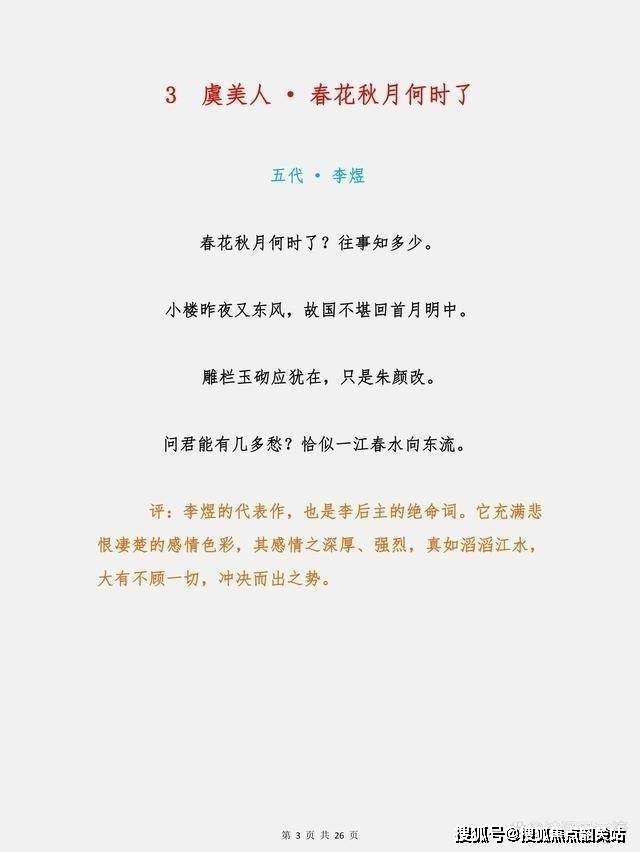 3.《虞美人·春花秋月何时了》