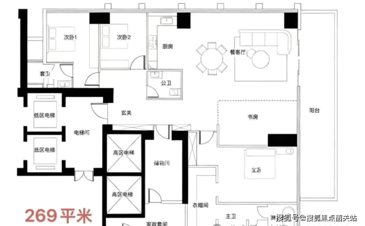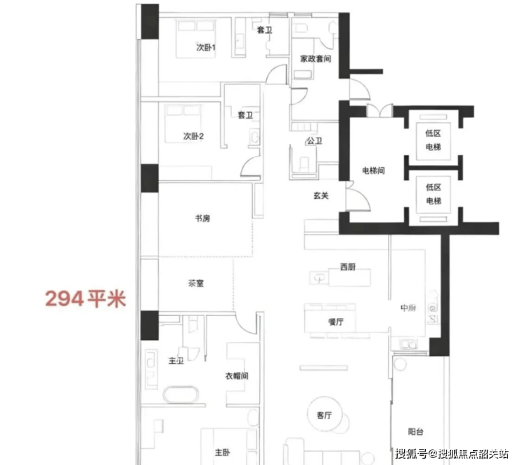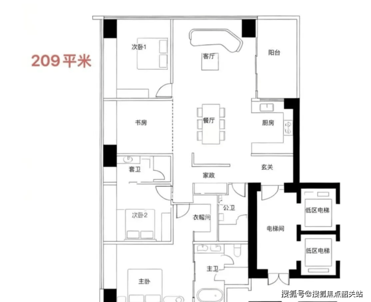 高区住宅享无遮挡景观,低区住宅布局合理,家政间及书房分区优化居住体验。