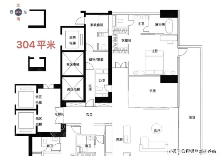 大平层户型体验:从209㎡到304㎡,感受空间开阔、采光通透、布局合理。