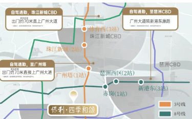 交通网络的立体覆盖,实现城市核心资源的快速通达。3、8、10、11号线四条地铁交汇,1站直达广州塔,2站抵达珠江新城,3站即达琶洲西区。紧邻广州大道的地理优势,让自驾出行畅达珠江新城、体育西、琶洲等城市核心区域,早晚高峰通勤也能保持高效便捷。