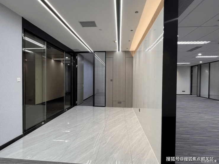 本次推出的378㎡单元位于低区,南向直面电梯厅,采光通透,视野开阔,俯瞰低密度园林景观,有效缓解办公疲劳。户型规划科学,设置4间独立办公室(可用于高管、财务、会议室或私密洽谈),开放区可灵活布局32至40个工位,满足中型团队一站式办公需求。得益于甲级写字楼的高得房率设计,实用面积占比优异,无冗余公摊浪费,空间利用效率显著高于市场平均水平。
