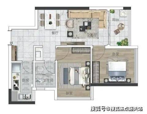 产品一:62㎡ 两房两厅一卫