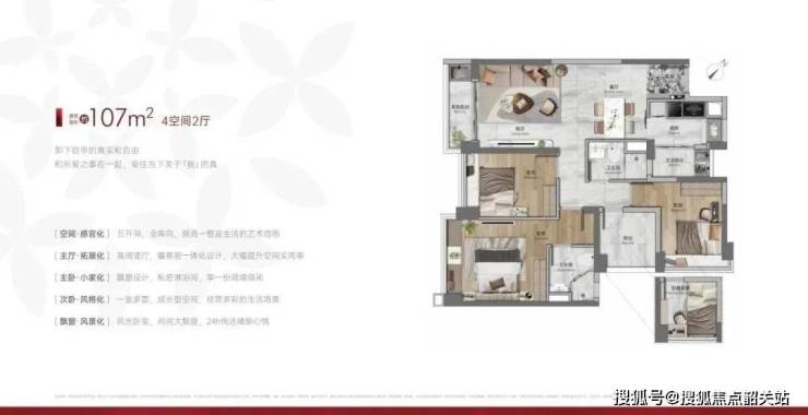 新世界·天馥的户型设计注重高效利用空间。最小的76平方米户型就能做到三房一卫,且带有江景视野,最大程度地利用空间并提供舒适的居住体验。更大的户型如98平米和107平米四房两卫户型,布局合理,卧室、客厅及餐厅等区域均朝南,保证了全方位的采光。项目还提供了智能化的家居系统,大大提升了现代生活的便捷性和舒适性。