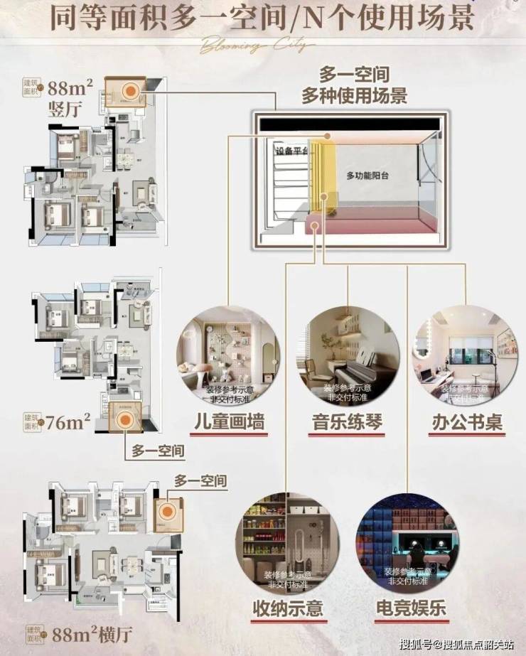 88㎡3房+1空间:分为横厅和竖厅设计,三开间朝南,阳光能从早晒到晚。