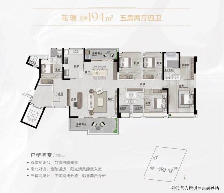 194㎡五房2厅4卫(三套房):南北对流双景观阳台,观景生活两不误。