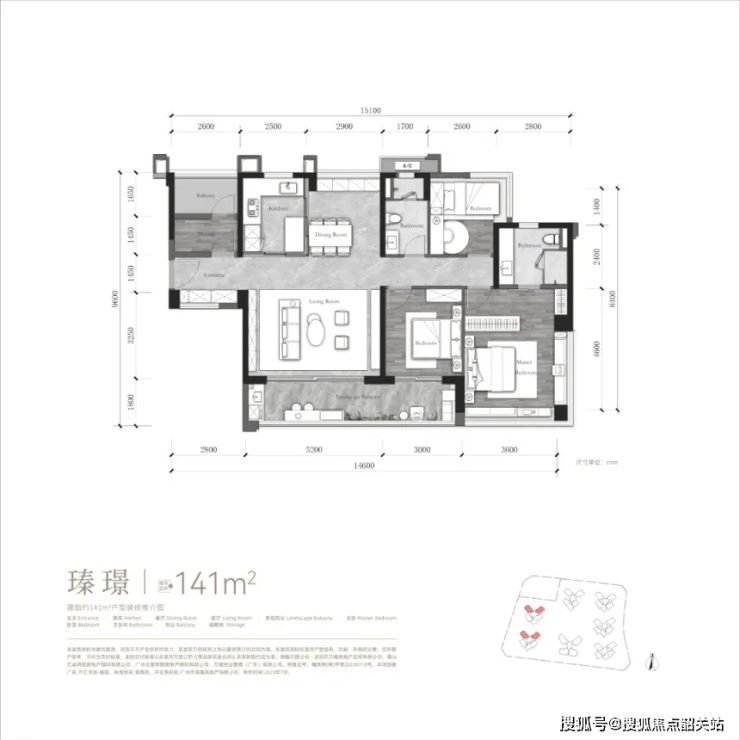 2. 141㎡四房:二孩家庭优选,南北双阳台 + 多功能房设计