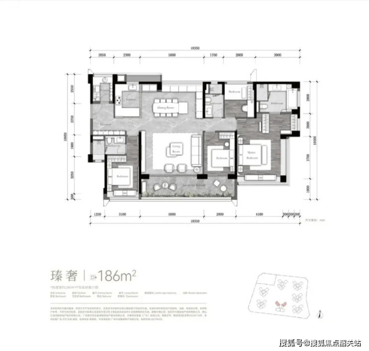 3. 186㎡四房:终极改善标杆,14 米南向面宽 + 双套房设计